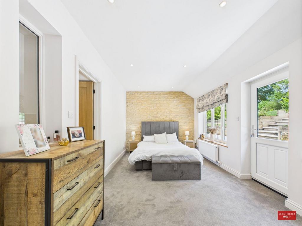 The heart of the home is the show-stopping open-plan kitchen and dining room. Here, a soaring vaulted ceiling, exposed Cotswold stone walls, and an abundance of natural light create a sense of space and drama. The bespoke, fully integrated kitchen features extensive storage, a beautiful central island, and exceptional floor space, ideal for both everyday living and entertaining.
