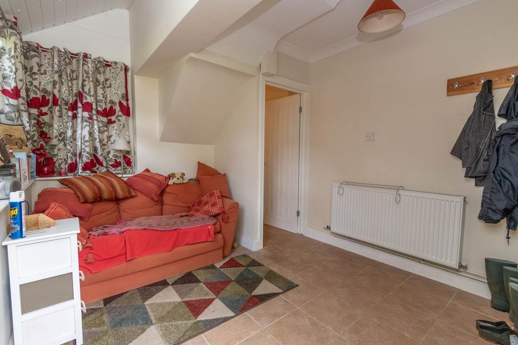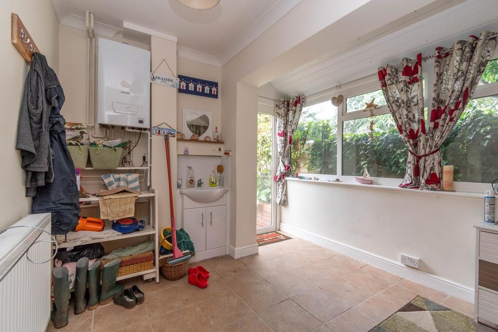 A versatile bright and airy room with a full width window to the side, window to the rear and a fully glazed UPVC door leading outside to the rear garden. Radiator, ceramic floor tiles, vanity storage unit incorporating a wash basin, LPG-fired boiler providing central heating and hot water.