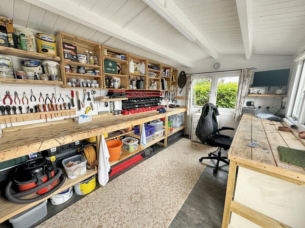 Shielded from the lane by hedging and stone walls. Double gates open to large gravelled courtyard. A car port with EV charger and two storage solar panel batteries. A timber workshop (4.52m x 2.60) with power are accessed here and there is a log store, coal bunker, compost bin and further storage area to the rear. A secluded seating area with pond, waterfall and gravel sits to the right. The pristine lawns stretch around the property with mature shrubs and raised beds. A vegetable patch, seating area and timber summer house (3.72 x 2.35) are situated to the far side with countryside views from every angle and there is an outside tap and external power sockets too.