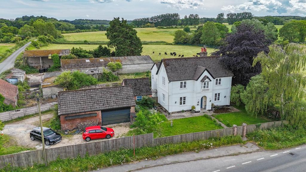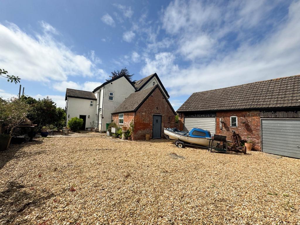 The property sits centrally within its plot and is approached via a gravel driveway which splits to the front or the rear of the garage block. To the front there is a parking area suited to several vehicles and in turn to a garden gate which accesses the front garden. A panelled swing gate denotes access to the rear of the garage block and a generous area of hard standing, which provides parking for a number of vehicles or other vehicle types. Between the garage block and house there is a detached store with both garage and store benefitting from power, light and water. Adjoining the rear of the property there is a courtyard area and this extends across the rear of the property into garden, which enjoys uninterrupted views across the adjoining farmland and beyond, with a southerly aspect.