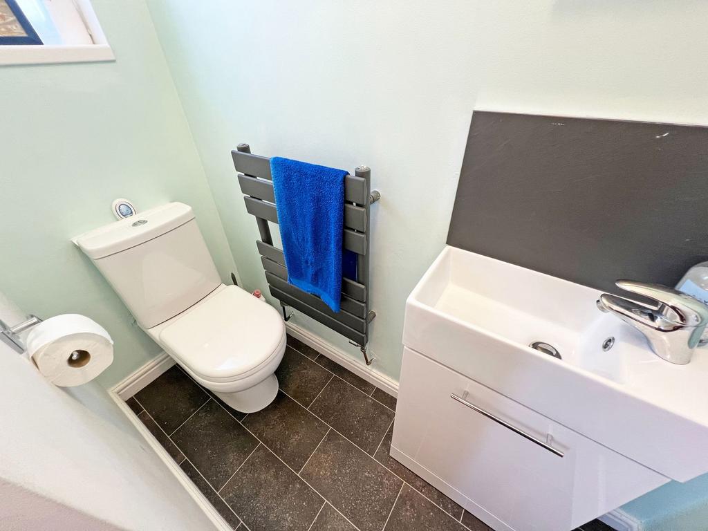 Outside the rear is a low-maintenance garden, which is mainly slabbed, with a covered but open area attached to the rear of the property. The property also benefits from a storage shed with full electrics.