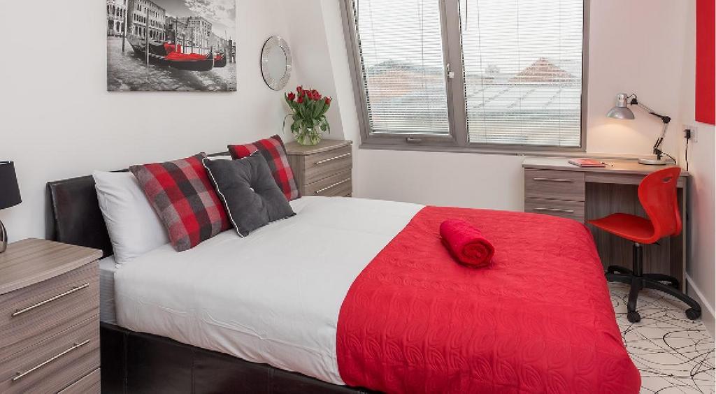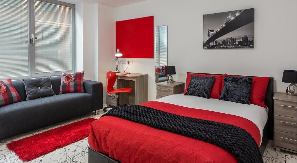 The building offers a variety of stylish studios, including Studio Sapphire, Studio Diamond, Studio Gold, and Studio Ruby, each designed to provide students with independence and privacy. Studios are well-equipped with essential furnishings, including a small double bed, study area, wardrobe, en-suite bathroom, and kitchenette. The larger studios provide extra space and upgraded amenities for those who prefer a bit more comfort.