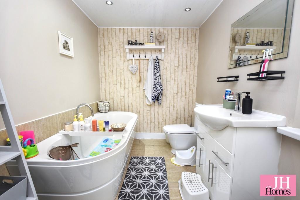 BATHROOM 10' 6" x 6' 6" (3.2m x 1.98m) Modern four piece suite in white comprising of WC, wash hand basin, shower cubicle and bath. Tiling to walls, radiator and uPVC frosted glazed window to side.