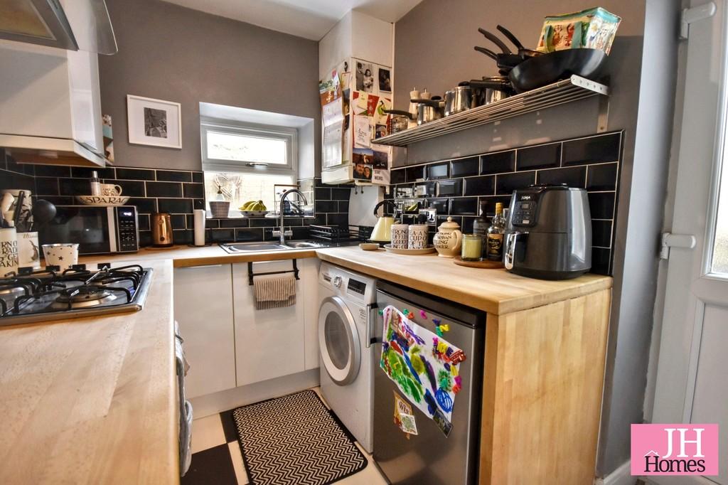 KITCHEN 10' 8" x 6' 5" (3.25m x 1.96m) Fitted with a range of base, wall and drawer units with worktop over incorporating one and a half bowl stainless steel sink and drainer with mixer tap, chrome effect handles and recess tiling. Integrated electric oven, four ring gas hob with cooker hood over, space and plumbing for washing machine and space for fridge. Wall mounted combination boiler for the hot water and heating system, uPVC double glazed window to rear and door to yard. Door and steps down to: