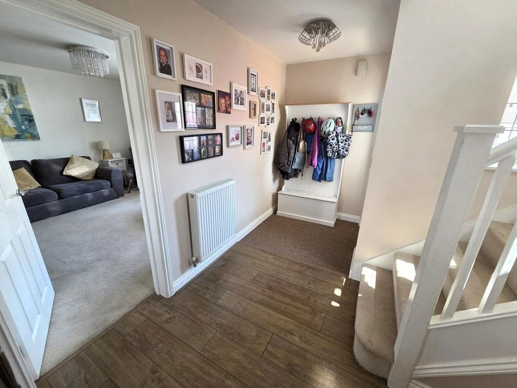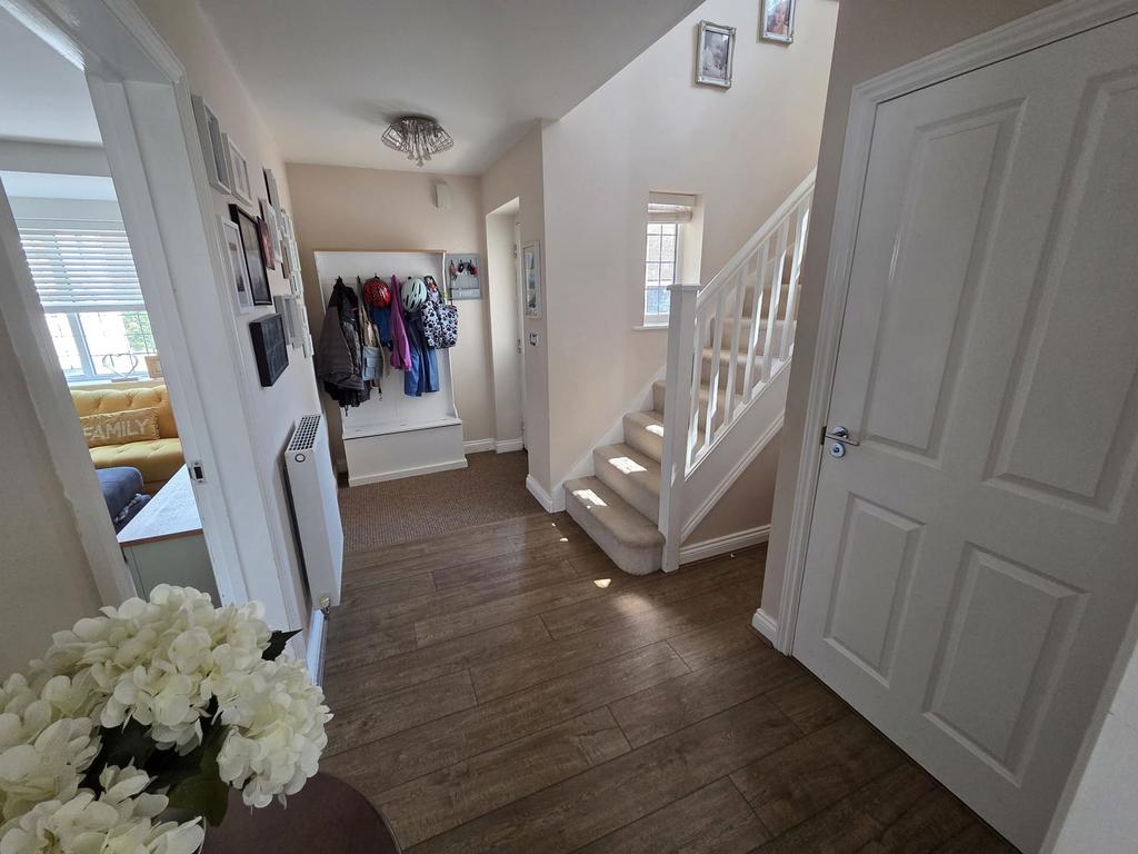 Spacious reception hallway, Upvc double glazed window to front aspect, dog leg staircase rising to the first floor, under stairs storage cupboard, radiator, white panel doors off to all rooms.