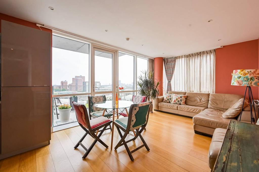 Well presented and sunlit 3 bedroom flat offering 2 bathrooms, plenty of storage space and a spacious open plan reception room with fully fitted kitchen leading to a charming balcony with views over East London.