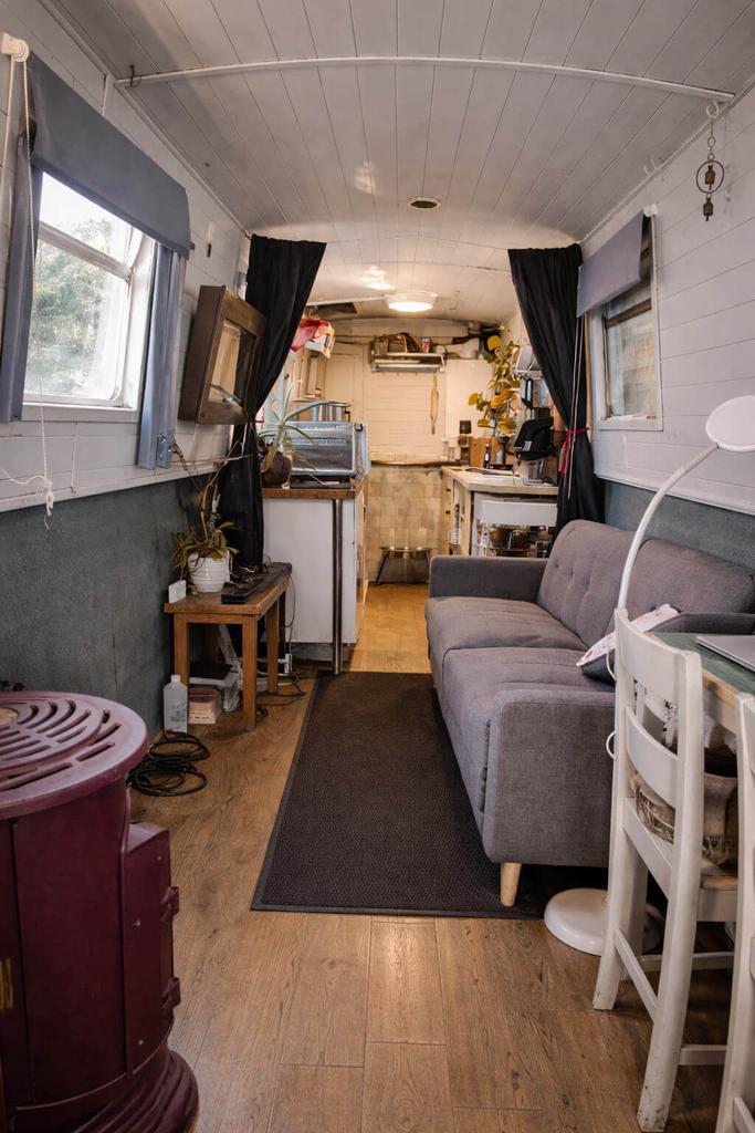 - Saloon: A bright and airy living space with a solid wood floor, built-in storage, and plenty of room for a log burner. Currently heated by two gas heaters, this area could easily be transformed into a warm and welcoming living area.