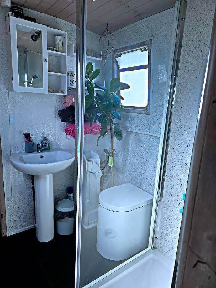 - Bathroom: Centrally positioned, fitted with a good-sized shower cubicle, composting toilet, and hand basin.