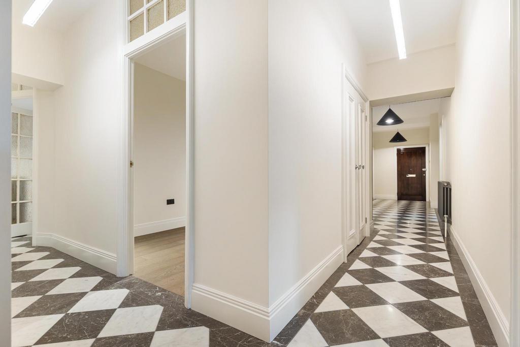 An exceptionally spacious and beautifully renovated five bedroom apartment situated on the lower ground floor (with a lift) of this sought-after portered mansion block, next to Kensington High Street.