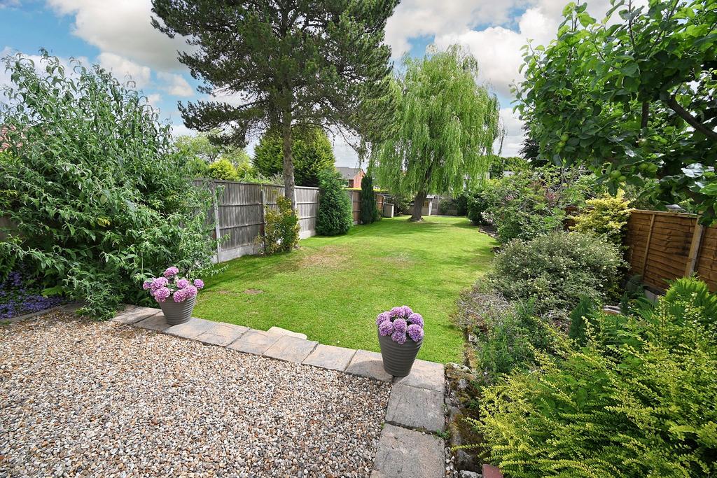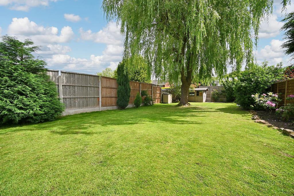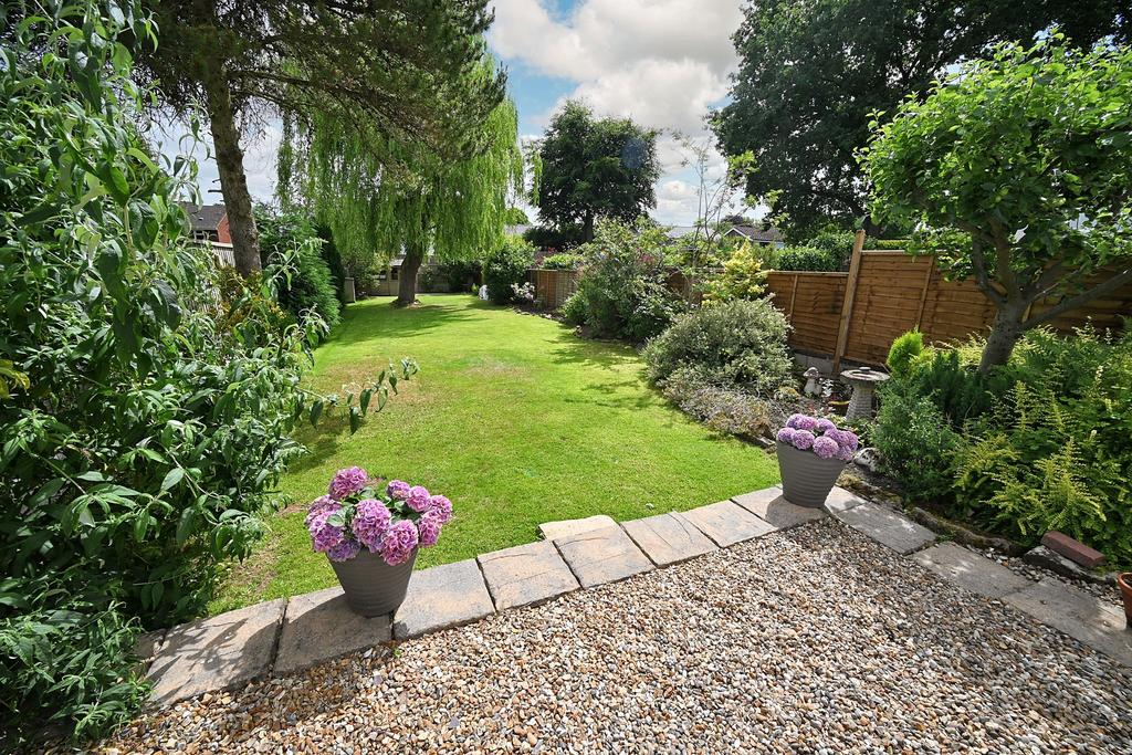 Rear Garden: Enjoying an east facing aspect and extensively landscaped to create a beautiful outlook, the fully stocked mature garden offers an excellent useable outdoor space and includes a full width gravelled patio with paved terrace, a shaped lawn approx. 100ft long, flowering borders with a variety of shrubs & trees, feature centre willow tree, timber garden shed and surrounding fencing.