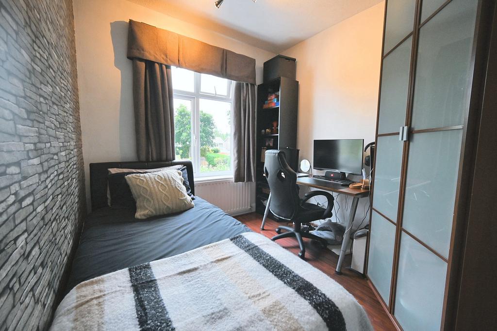 Bedroom Three: 10'3'' (3.12m) x 8'6'' (2.59m) Radiator, laminate flooring and double glazed window to rear.