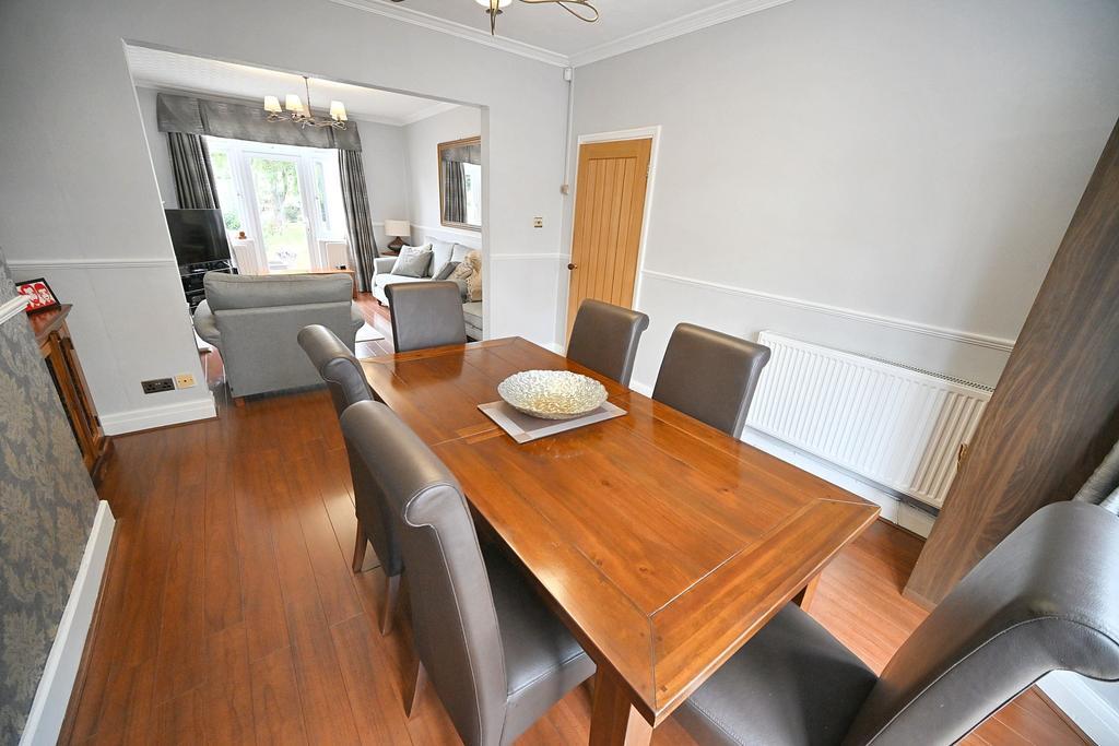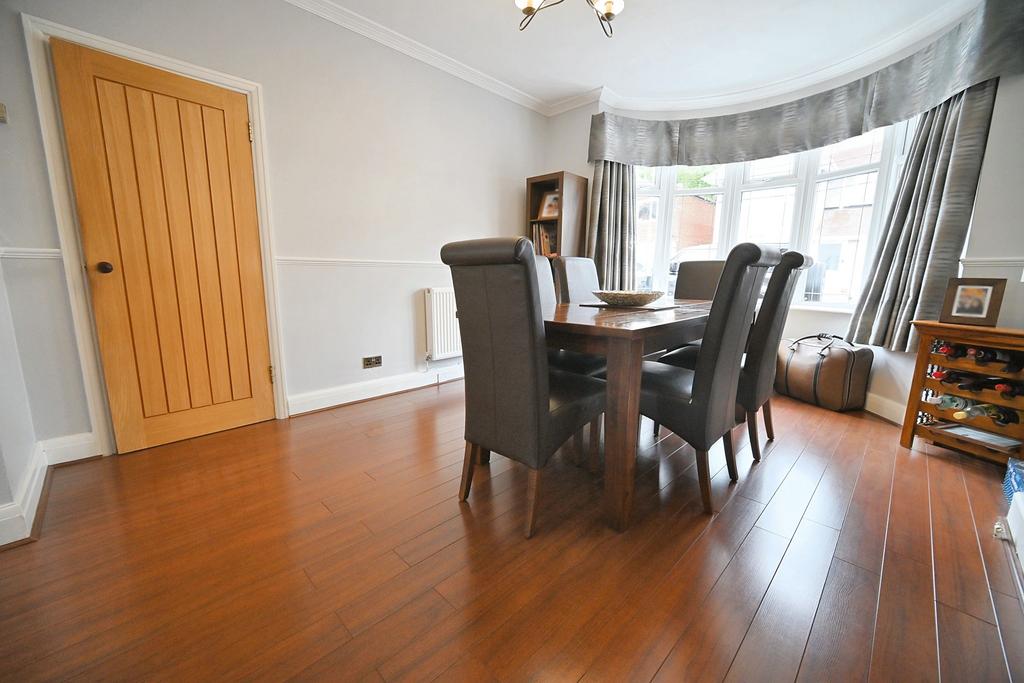 Dining Room: 12'4'' (3.75m) x 11'11'' (3.64m) Radiator, coved ceiling, laminate flooring and double glazed leaded bay window to front. Open archway leads to: