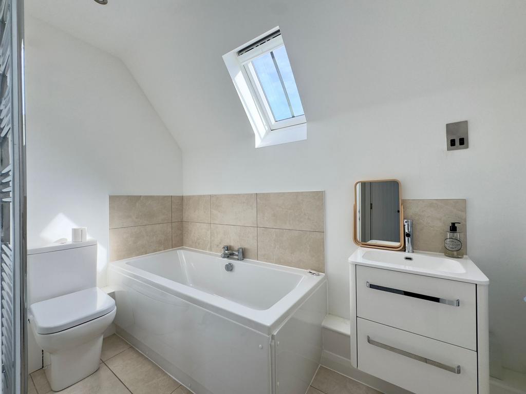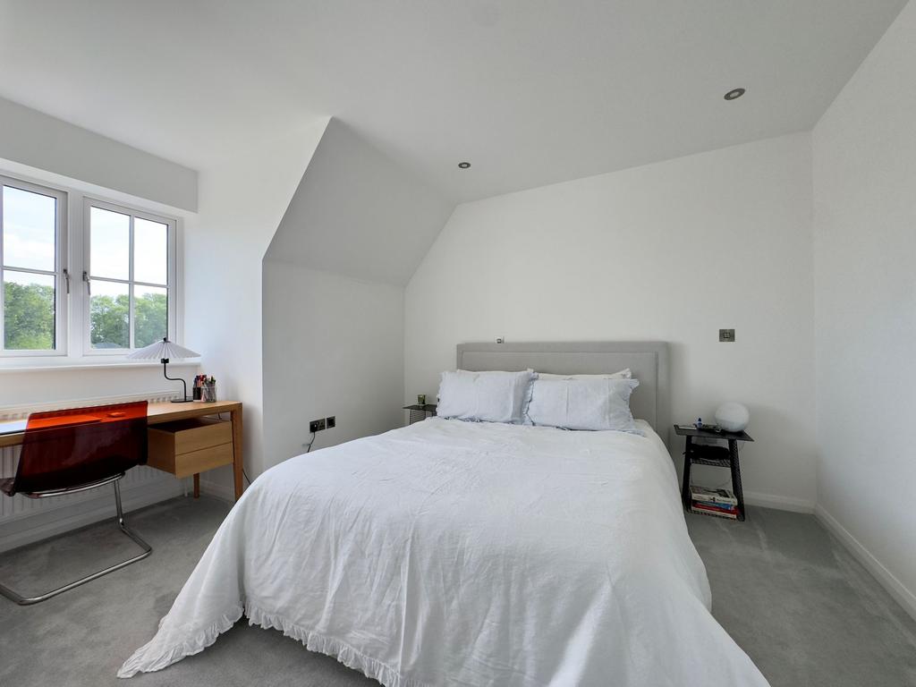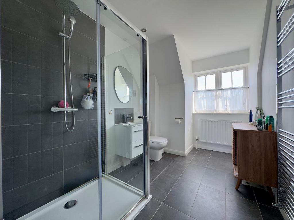 Upstairs, there is a spacious landing with a large airing cupboard, modern family bathroom and three double bedrooms. The master bedroom includes a recessed area perfect for a dressing space or additional storage, along with a private ensuite shower room. The second bedroom is exceptional in size, while the third bedroom offers lovely scenic views to the rear.