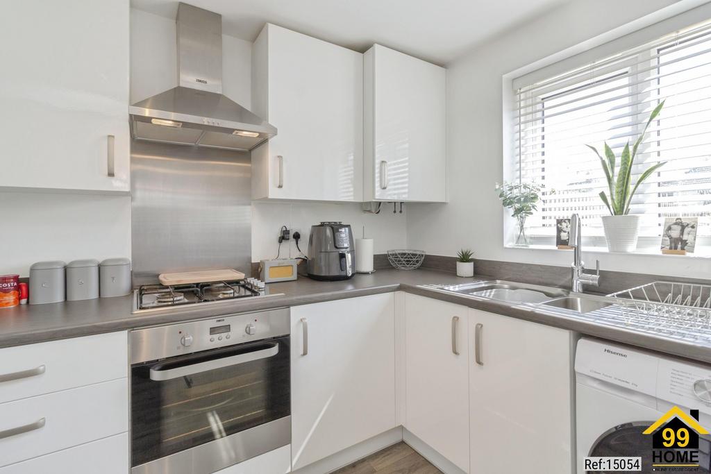 As you enter, you are welcomed into a spacious living room that provides a warm and inviting space to relax or entertain. The kitchen is positioned to the rear, with ample worktop and cupboard space and easy access to the private rear garden, ideal for outdoor dining and summer evenings.