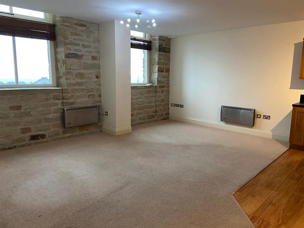A spacious one king-size bedroom apartment in this sought after development with stunning views across Huddersfield. This loft style apartment is neutrally decorated throughout with exposed stone walls. The open plan living accommodation has plenty of space for sofas and the kitchen area has integral appliances including ceramic hob, oven, fridge, freezer, dishwasher and washer dryer. There is a shower over the bath and private off road parking. Available with no onward chain.
