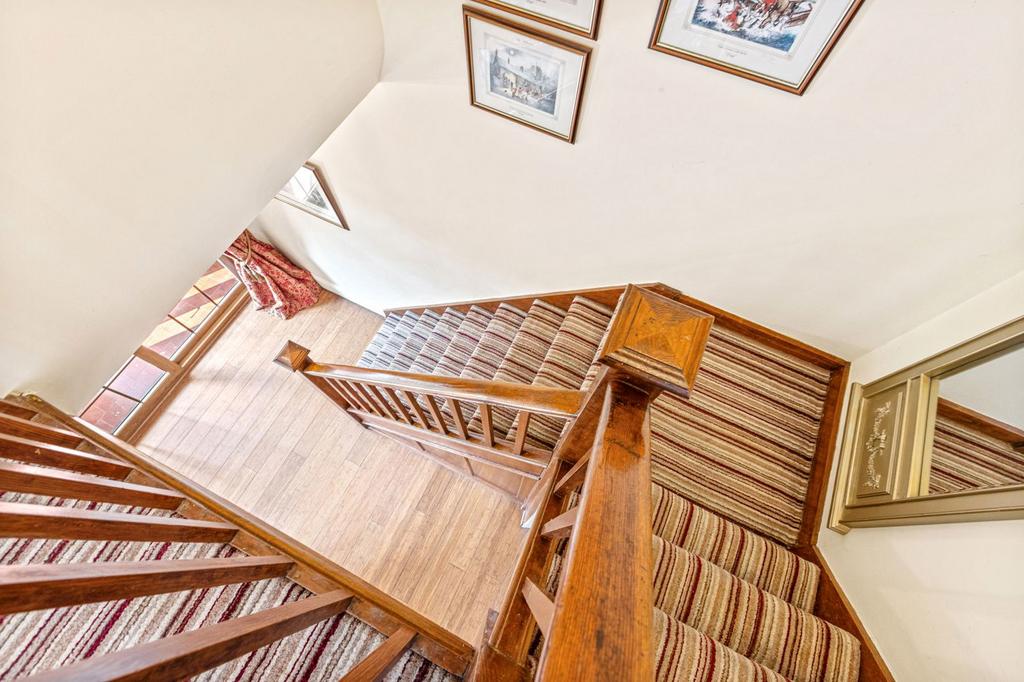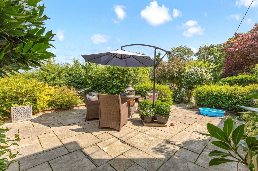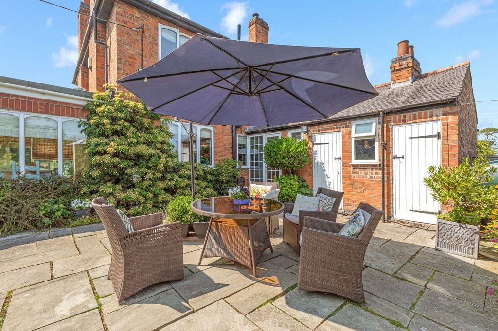 Set back from Ostler Lane, the property enjoys a private, secluded setting with beautifully landscaped gardens to the front and side — ideal for entertaining or relaxing. To the rear, you’ll find patio areas, two outside stores, and further garden space.