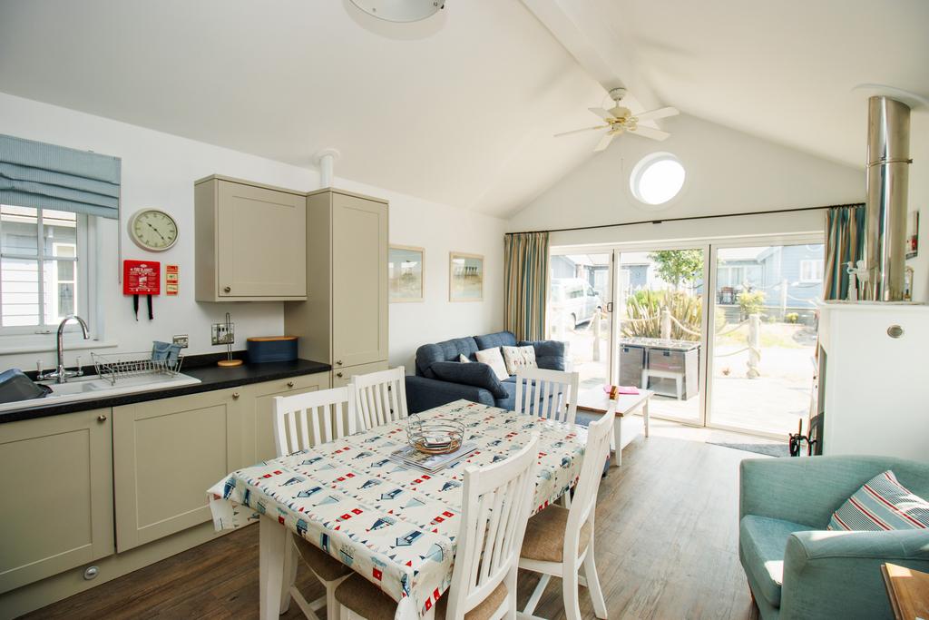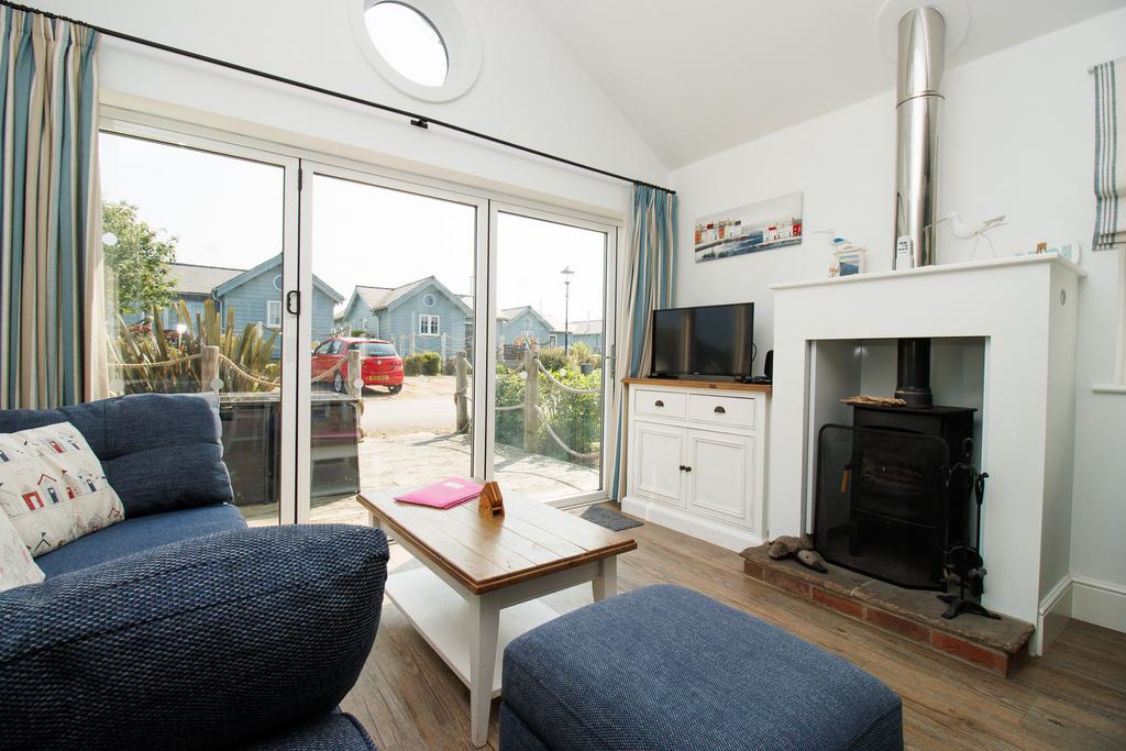 Multi-fuel burner. Radiator. Porthole window. Upvc double glazed bifold doors to decked area.