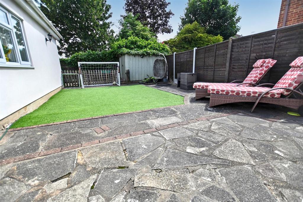 Rear Garden - Larger than average and mainly paved with a raised feature fish pond with brick wall round and pergola over, to one side of the garden is also a further paved area with artificial lawn, fenced to boundaries, outside tap and power point.