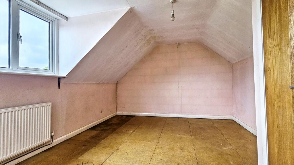 BEDROOM 2 ( 4.4m x 3.5m approx)(14'4" x 11'4" approx) with fitted carpet, radiator, side window, power point, double recessed wardrobe, and access to eaves space.
