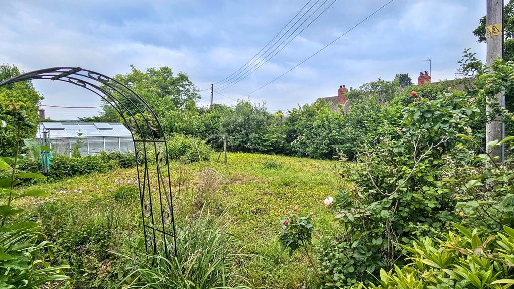 OUTSIDE The level gardens extend to around 0.19 of an acre and include lawn areas, trees, shrubs, two greenhouses, and a timber shed.