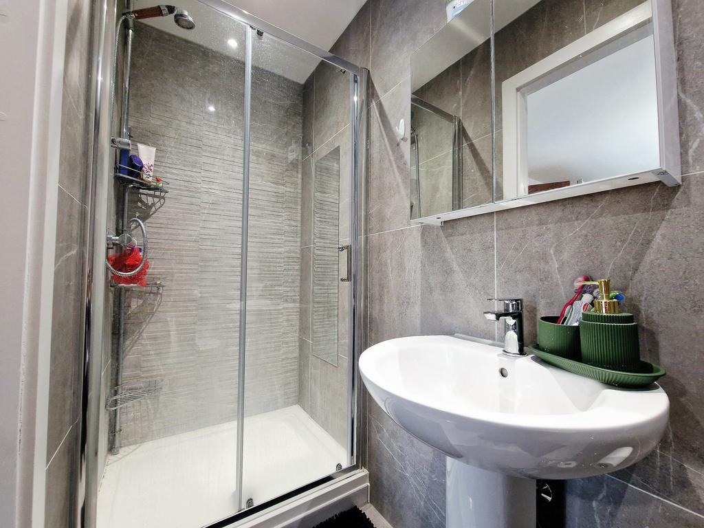 Upstairs, the main bedroom offers a private retreat, complete with its own en-suite and walk-in shower. The two additional bedrooms are generously proportioned ideal for children, guests, or a home office. The main bathroom is finished with a crisp, modern three-piece suite, adding to the home-s appeal.