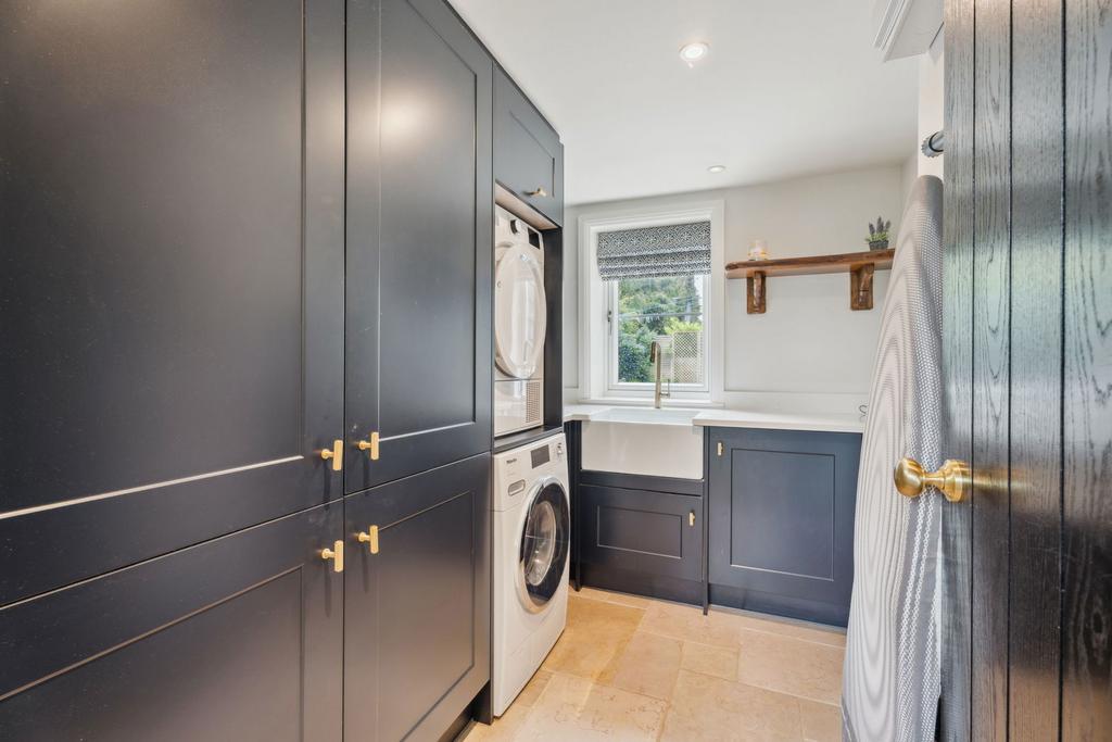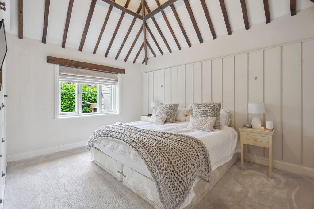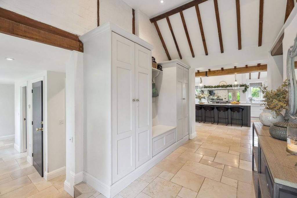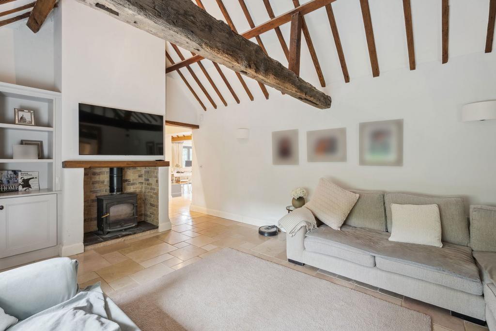 Finished to the highest of standards, this exceptional property effortlessly combines timeless period features with the comforts of modern living. From the moment you step into the welcoming entrance hall - complete with excellent built-in storage - you’re met with a sense of warmth, quality, and belonging. At the heart of the home is a fabulous, large open-plan kitchen and dining area. Beautifully designed for both everyday family life and entertaining, it offers ample workspace, high-end finishes and appliances, and an abundance of natural light. Adjacent is a cosy yet generously proportioned living room, where exposed beams and a log burner add both character and a sense of sophistication.