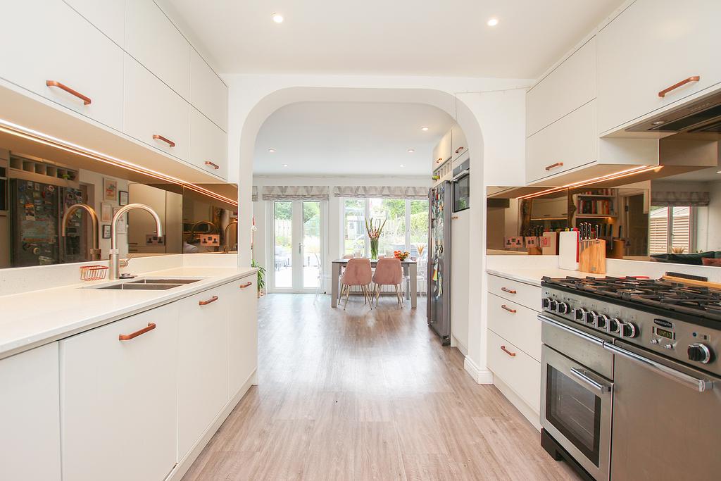 This deceptively spacious two storey property offers five generous bedrooms with a separate study, all of which are serviced by a family bathroom, two en-suites and a separate WC. A stunning Masterclass kitchen, installed in 2019, features bespoke quartz worktops and splashbacks and high quality appliances. The lounge and separate family room offer space for both relaxing and entertaining and a south facing garden, complete with private rear patio that is perfect for alfresco dining and summer gatherings.