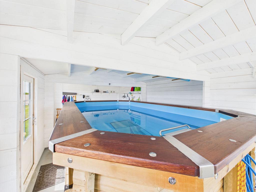 - Pool house with heated Certiken Sports Pool fitted with Endless Pool Fast Lane Pro Current Unit and air source heat pump adds a touch of luxury – perfect for relaxation, swim training and post-ride r