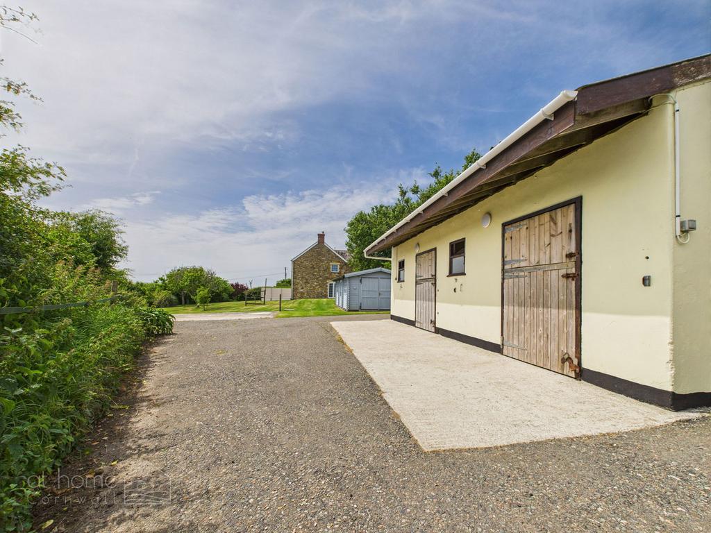 Occupying just over two acres, the property includes a fully equipped equestrian facility comprising a stable block, outdoor menage (20m x 40m with a sand and fibre mixed surface), paddock, and meadow-style lawns with mature trees. An impressive pool house with a Certiken Sports Pool fitted with Endless Pool Fast Lane Pro Current Unit and air source heat pump adds a touch of luxury, ideal for post-ride relaxation, leisure, swim training or rinsing off after a morning surf. A downstairs shower room is perfectly placed for this, adding to the practicality of the layout.