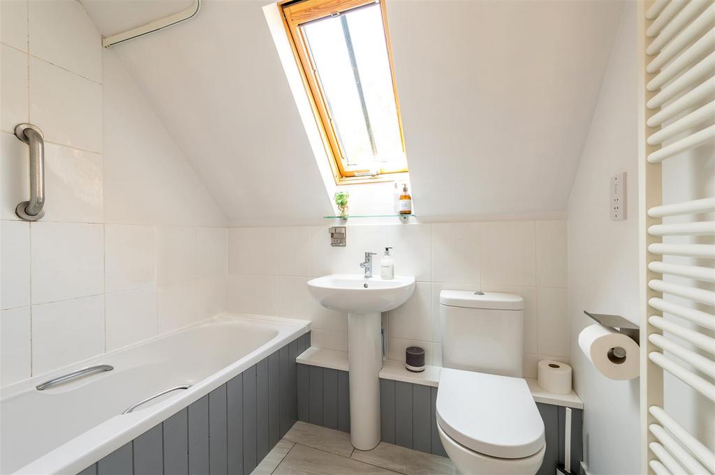 On the first floor, three bedrooms and a family bathroom are set around a landing space with bedroom one benefitting from an en-suite shower room and built in wardrobe, with two further bedrooms enjoying garden views, and a family bathroom. The airing cupboard houses an electric boiler.