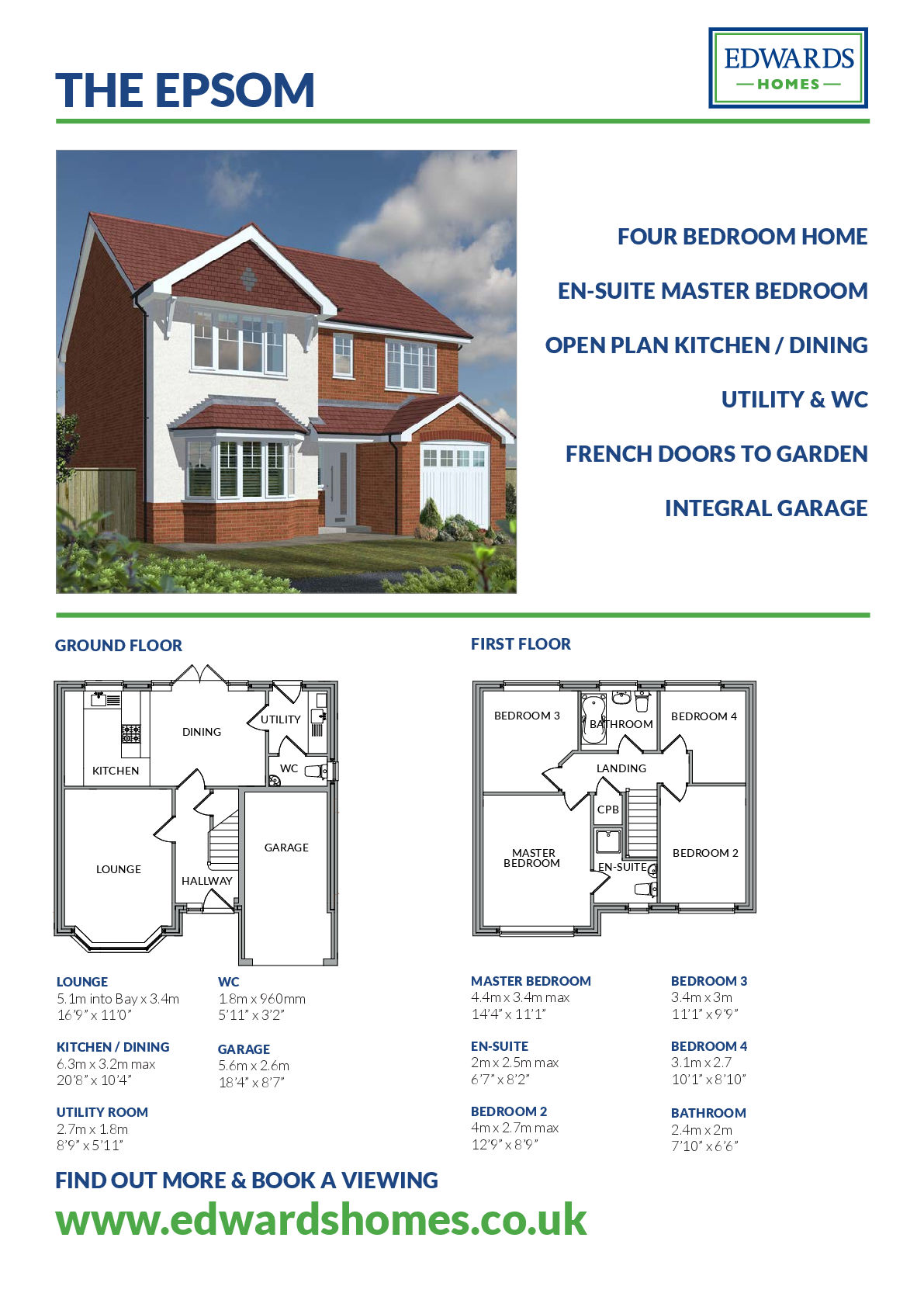 Edwards Homes presents the Epsom. A traditionally built four bedroom detached home with integral garage. Offering an entrance hall, lounge, cloakroom and open plan kitchen/diner with French doors leading to the fully-turfed rear garden.