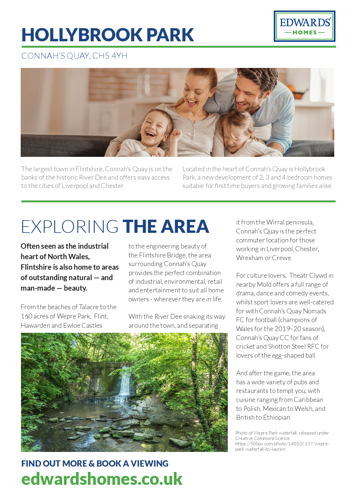 Located in the heart of Connah's Quay is Hollybrook Park, a new development of 2, 3 and 4 bedroom homes suitable for first time buyers and growing families alike.