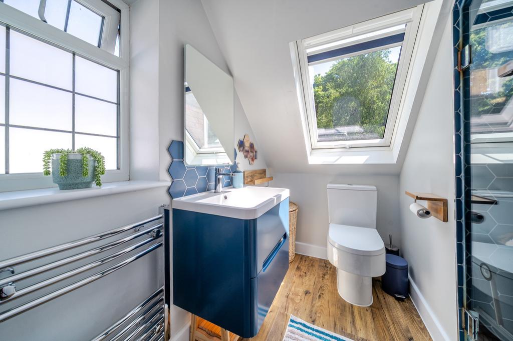 On the first floor you will discover three of the bedrooms and shower room. With all three bedrooms being doubles the third enjoys an outlook over the rear garden. The master bedroom accessed via a sliding door is a generous room and offers a dressing area prior to entering. Bedrooms two and three have the benefit of some built in storage. The shower room is fitted with a walk in shower cubicle, wc, hand basin, vanity unit and heated towel rail.