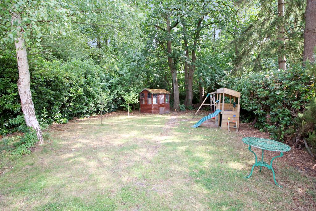 Outside the property enjoys having a wonderful rear garden with tree lined outlook. Mainly lawn there are then mature bushes and borders and a shed offering some storage. Leading up the garden is a further shed and woodland area. The detached garage offers storage or parking but could be converted to suit your needs. Side access leads to the front of the property and your driveway parking for several vehicles.