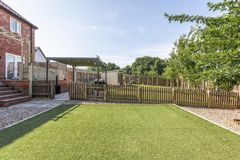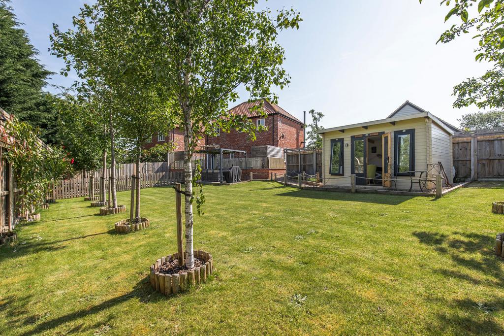 Outside, the property excels further with a large, landscaped garden, perfect for relaxing or entertaining on sunny days. A detached cabin offers endless versatility - home office, studio, or retreat - while the expansive garage provides excellent storage or workshop potential. Situated within easy reach of Holt and the North Norfolk coast, 12 Canon Marcon Way represents a rare opportunity to enjoy village life without compromise.