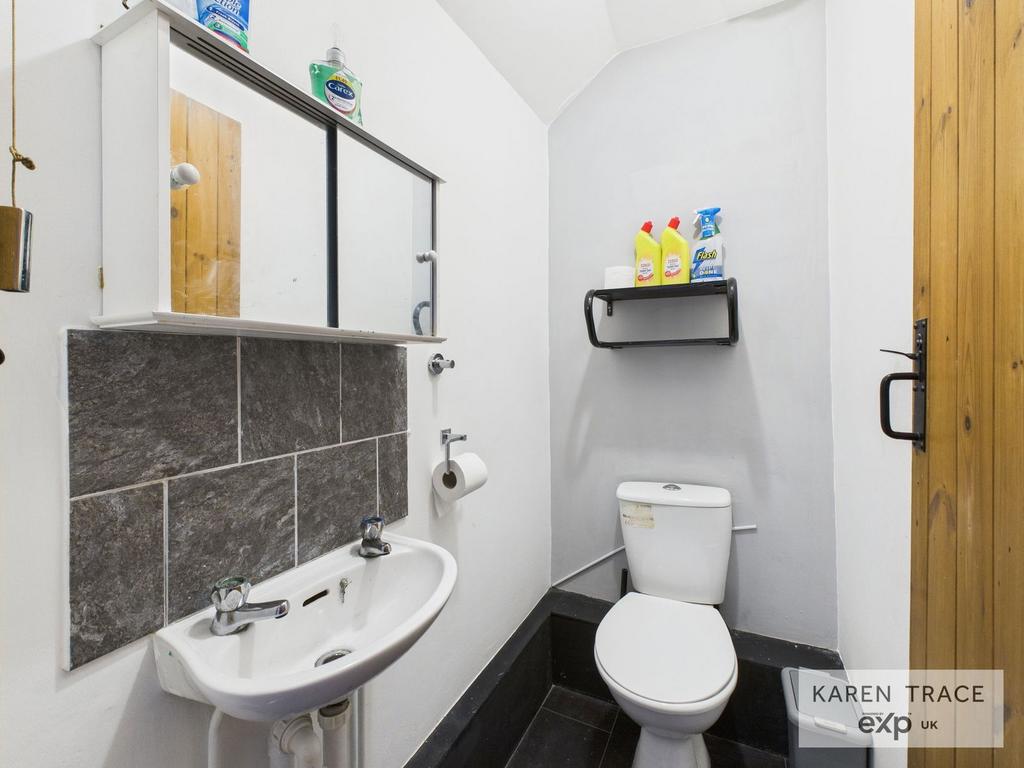 Fitted with a range of wall and base units with worktops over, stainless steel sink, and part-tiled walls. There is plumbing for a washing machine, space for a tumble dryer, and a beamed ceiling that complements the cottage’s rustic charm. uPVC double glazed window and door to the front elevation.