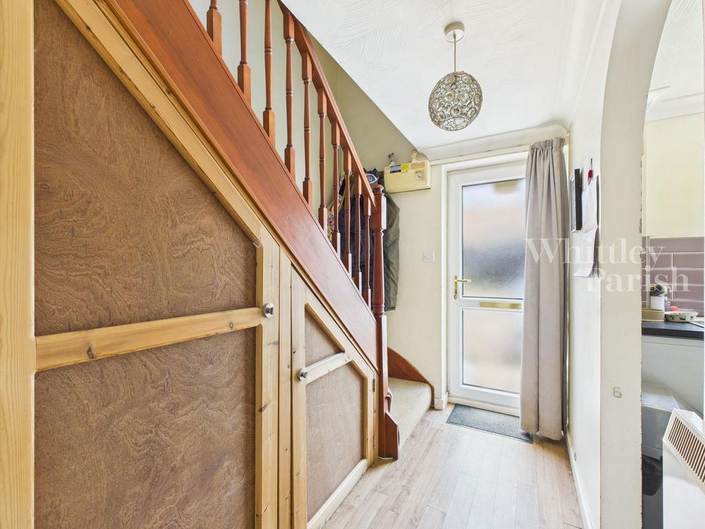 The property comprises a two bedroom end-terrace house built of traditional brick and block cavity wall construction under a pitched interlocking tiled roof. The home has electric heating and upvc double glazed windows and doors. Measuring approximately 800 square feet, this end terrace is slightly larger than the rest of these style homes on the development with its attractive turret gable end. The ground floor has a spacious lounge diner which is a wonderfully bright and airy room, and a kitchen that in recent years has been updated with modern handleless high gloss units providing a stylish finish. On the first floor, you find two double bedrooms that have built in wardrobes and a family bathroom.