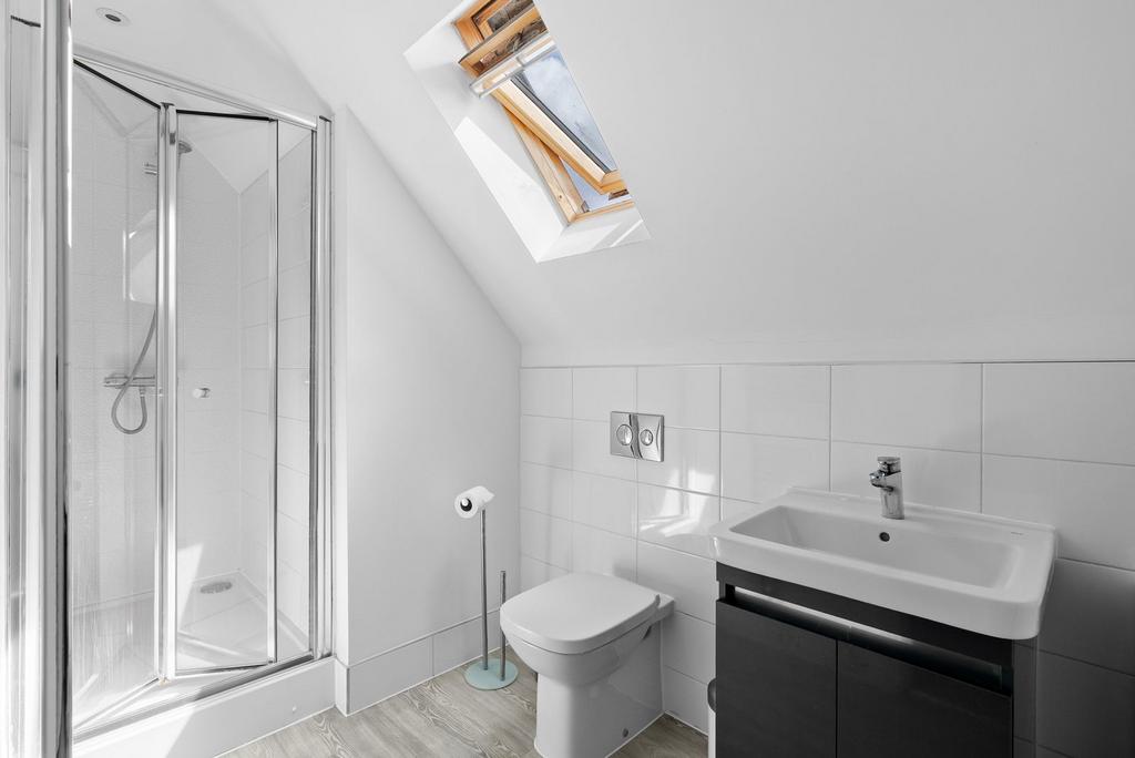 Occupying the entire top floor, the principal bedroom suite offers an impressive retreat, with a generous double bedroom, ample fitted wardrobe space, and a smartly finished en suite shower room.
