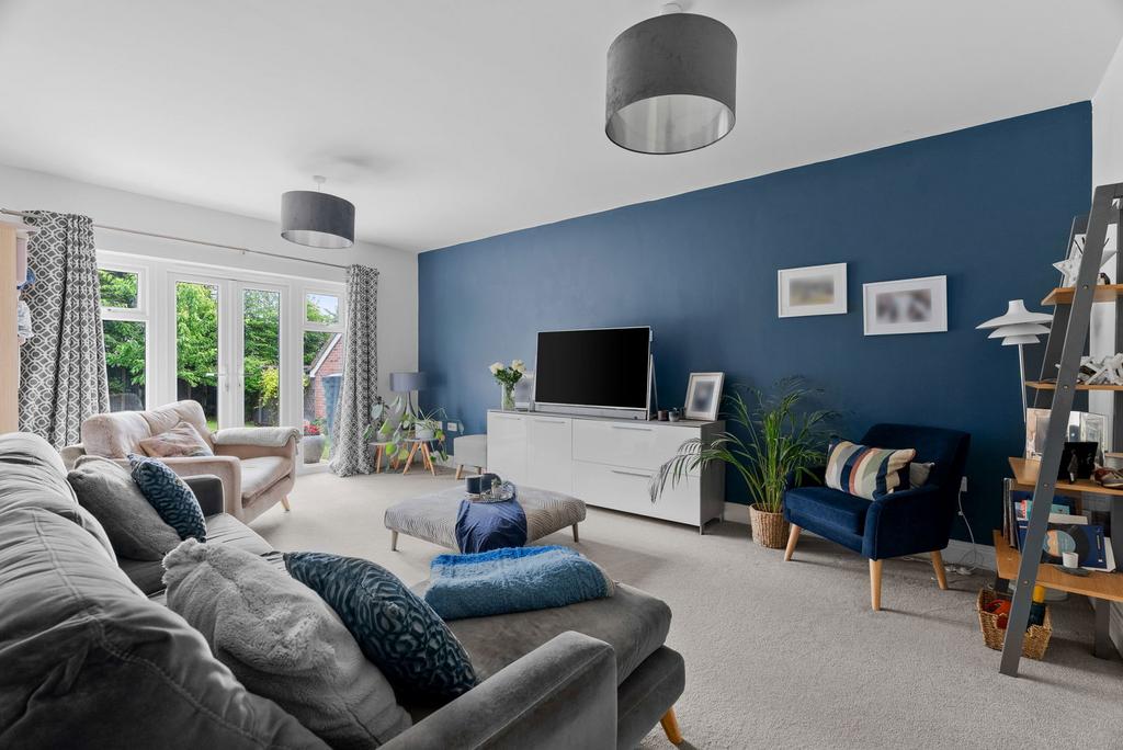 A generous entrance hallway sets the tone for this beautifully presented home, opening into a bright and welcoming sitting room with French doors leading directly onto the patio and rear garden—perfectly suited to both relaxed family living and entertaining. To the front of the house lies a well-proportioned kitchen/breakfast room, thoughtfully designed with sleek, contemporary cabinetry, integrated appliances, and a central island providing informal seating. The ground floor also features a separate dining room with access to the garden, as well as a useful cloakroom.