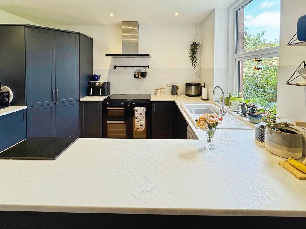 - Two generous reception rooms — a 29ft sitting/dining room with a working open fire and bi-fold doors opening to the garden, plus a bay-fronted family room with a cosy wood-burning stove.
