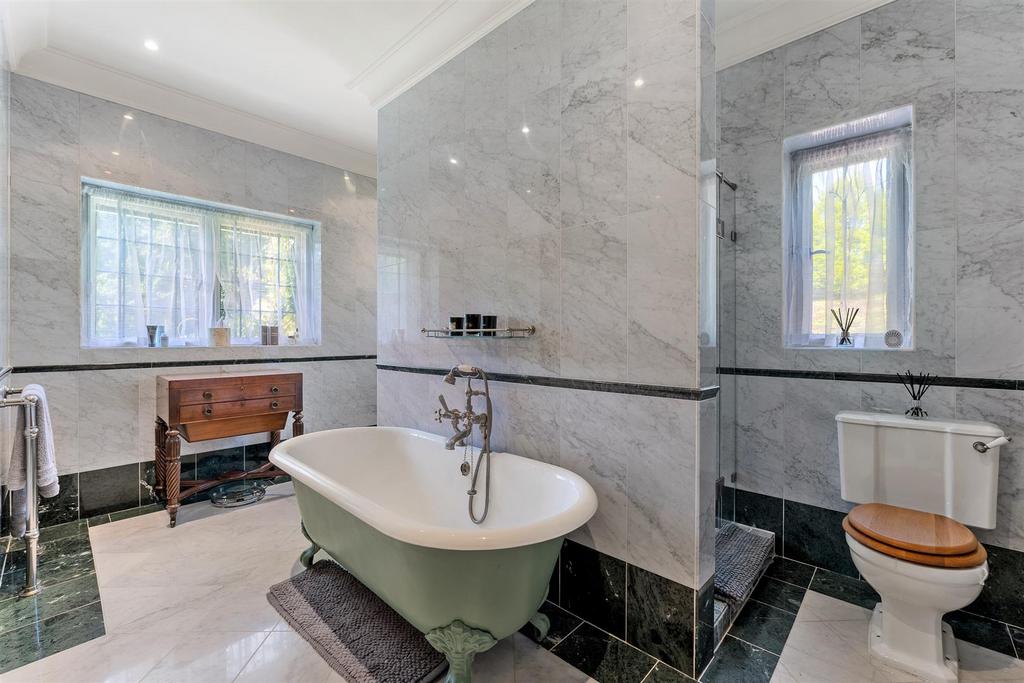There is an immaculate leisure suite with indoor swimming pool, gym, jacuzzi, steam room and sauna. With 9 bedrooms in the main house (principal with en-suite and dressing) plus an additional two-bedroom annexe with Mark Wilkinson kitchen and media room.