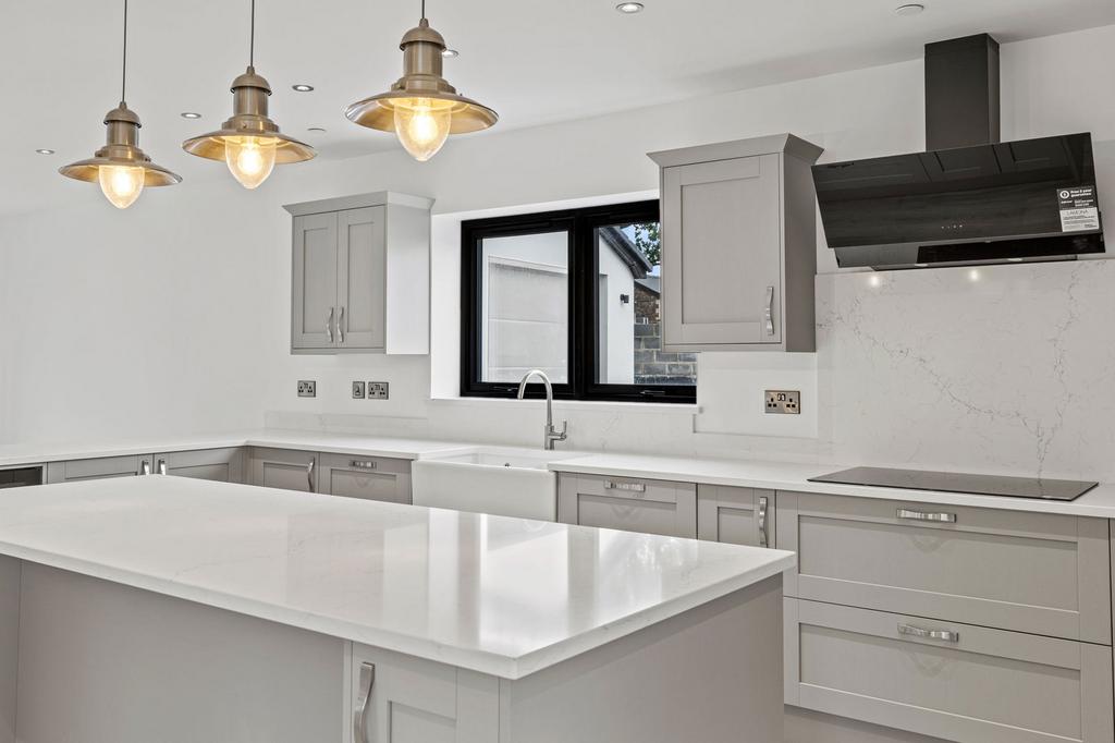uPVC triple-glazed side window and rear door, Quartz worktops, 1½ bowl ceramic sink, base and larder units, LVT flooring.