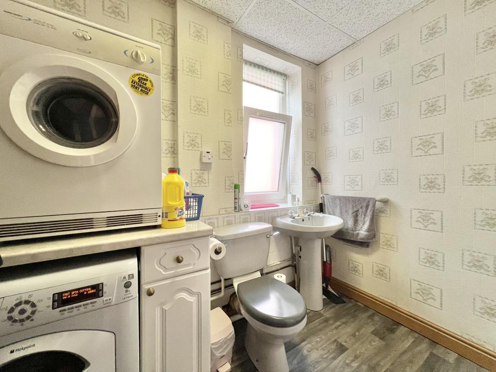 UPVC double glazed window to side aspect, plumbing for washing machine and dryer, wash hand basin, low flush wc and radiator.
