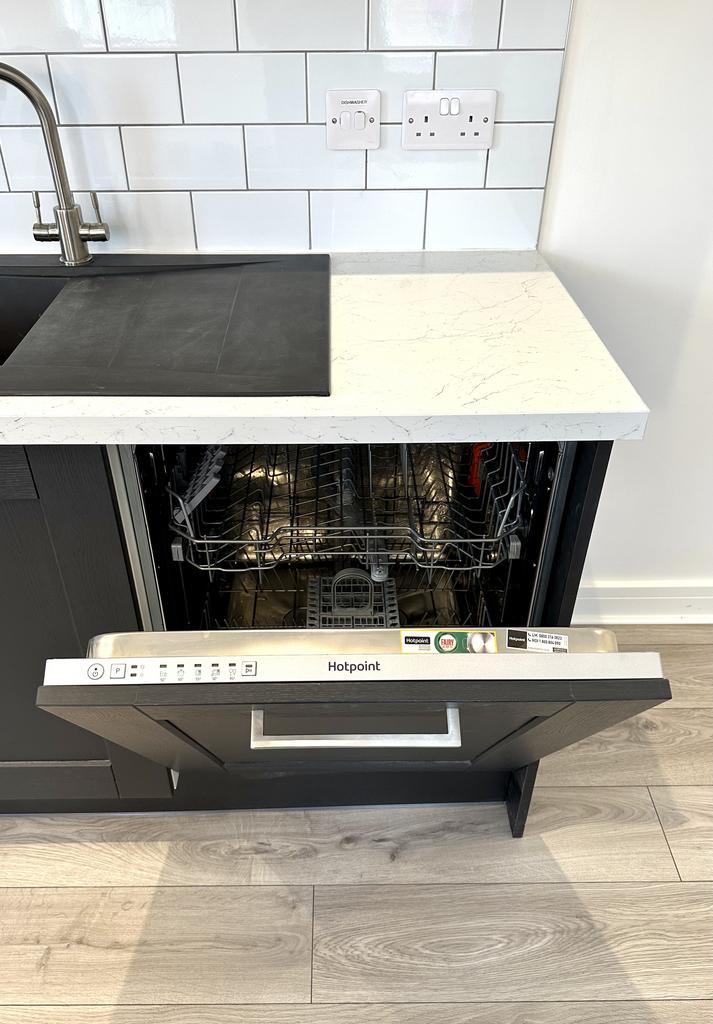 Upon entering this flat, you will be greeted by its stylish and modern design. The open plan living and dining area is spacious and bright, providing ample space for relaxation and entertainment. The fully equipped kitchen features a range of integrated appliances, including a dishwasher and fridge freezer, providing you with everything you need to enjoy your home to the fullest. There is also a separate large open plan office area, perfect if you work from home.