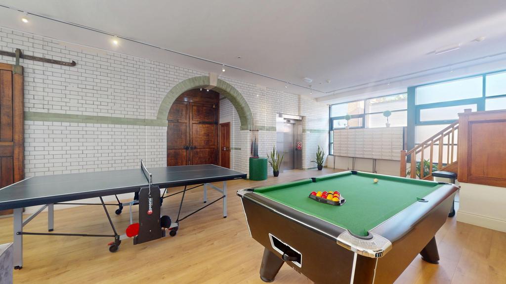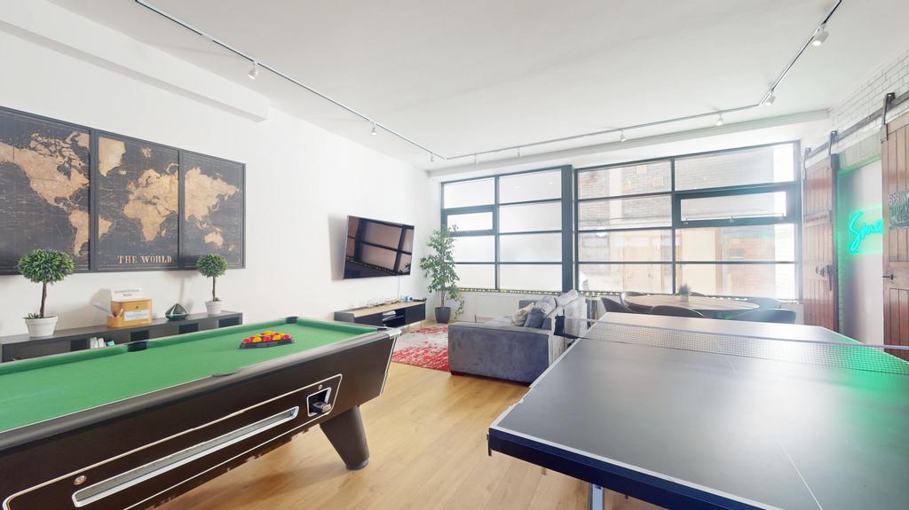 Communal room with Pool & Ping pong table, Lounge space and TV with PlayStation 5