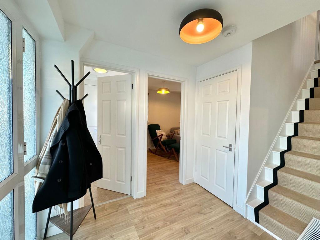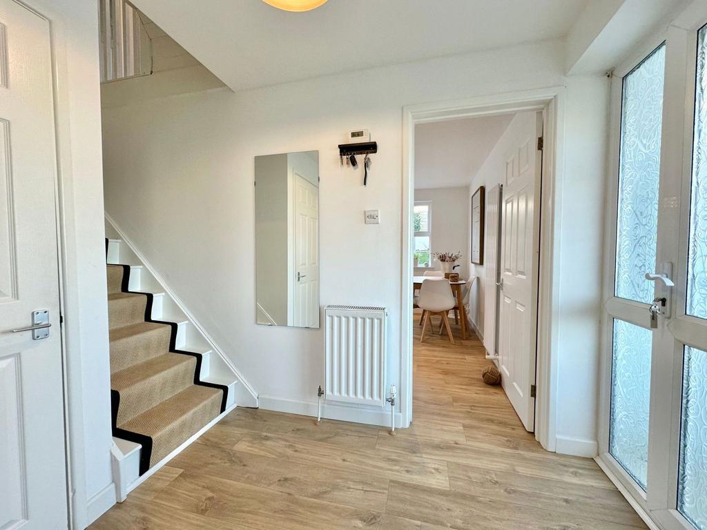 Light point, UPVC double glazed windows with far reaching views towards Brunel Woods, door to garage, tiled flooring, UPVC obscure glazed door with matching side panels to