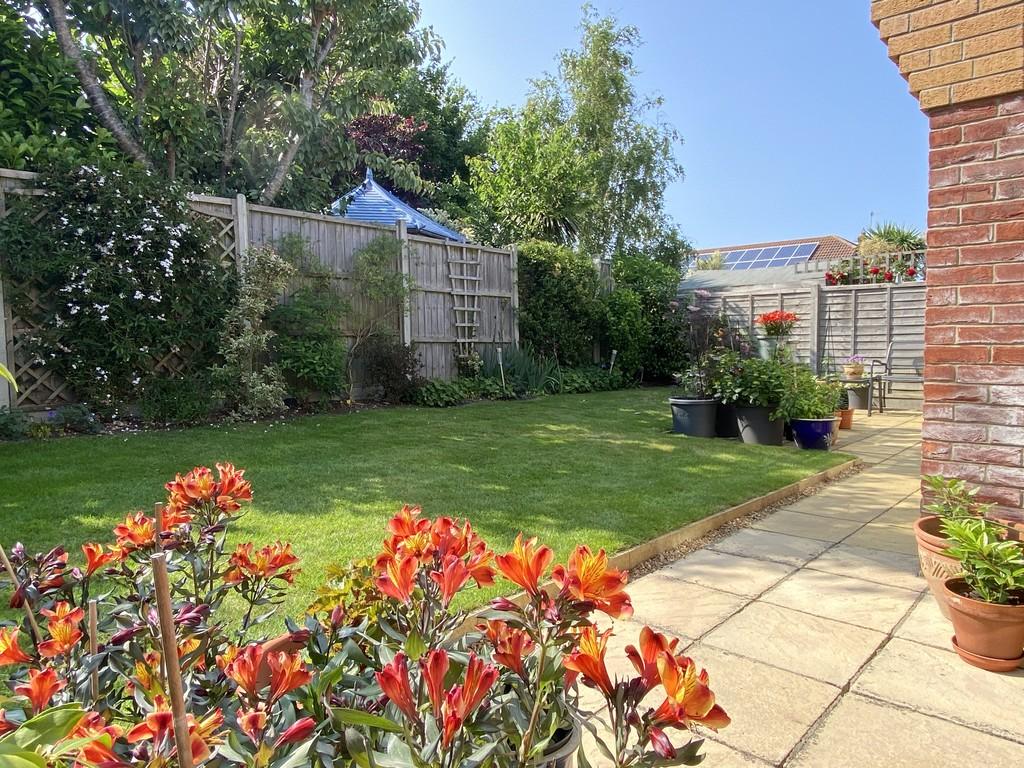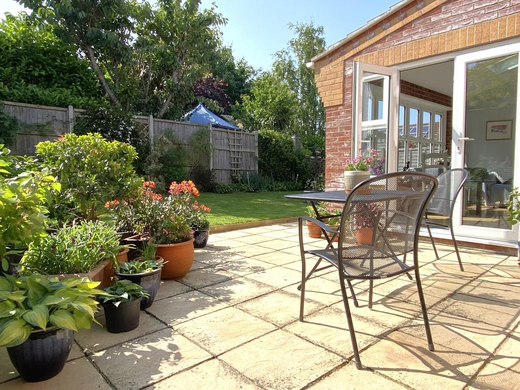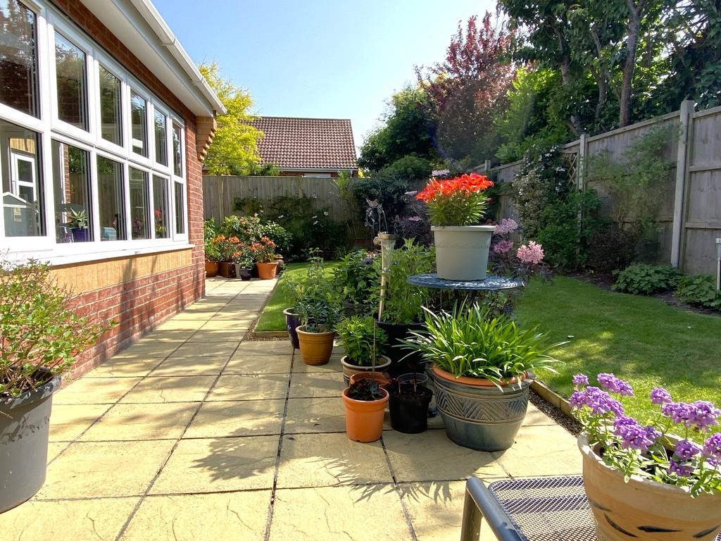 A tall gate at the side of the property leads to a paved path edged by shingle This opens into a beautifully landscaped and manageable garden with a paved seating area that enjoys a South and West aspect, perfect for relaxing and entertaining. The well-tended lawn is edged by beds planted with a variety of mature shrubs, flowers, and climbers supported by the fencing that encloses the garden. An outside tap adds to the convenience of this delightful outdoor space.