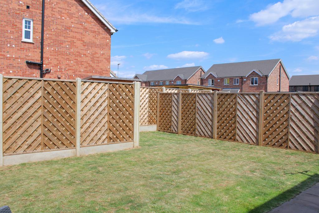 The property is fronted by a neat buffer garden and the block paved side reception drive allows for 2 car parking. A high timber gate opens to the rear of the property where a full width flagged terrace with Shed overlooks the generous, primarily lawned garden. The side and rear boundaries are marked by timber panel fencing.