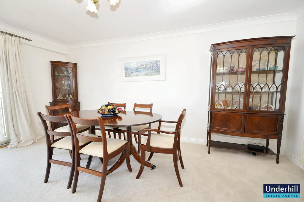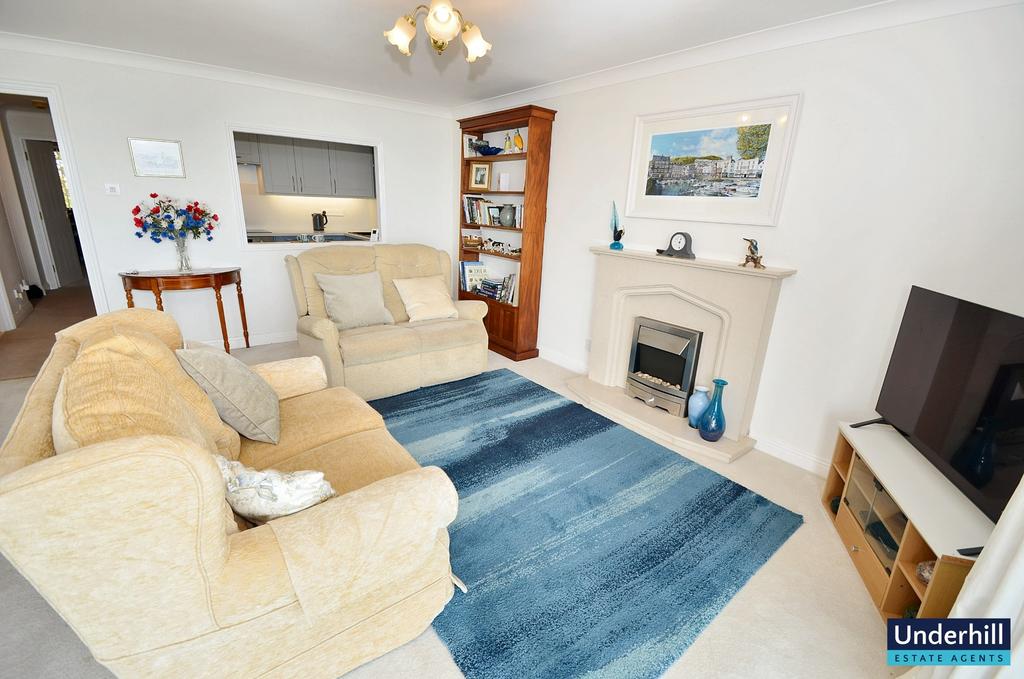 The spacious living/dining area is filled with natural light thanks to a large window and double-glazed door leading to the private balcony. This inviting space is perfect for relaxing or entertaining, with stunning views over the communal gardens and panoramic sea views that stretch as far as Lyme Regis and Portland on a clear day. This offers amazing moonrises, sunrises and spectacular views of lightning storms out at sea. The room is enhanced by a freestanding fireplace, which creates a focal point to the sitting area, while the spacious dining area comfortably holds a 6-seater dining set.