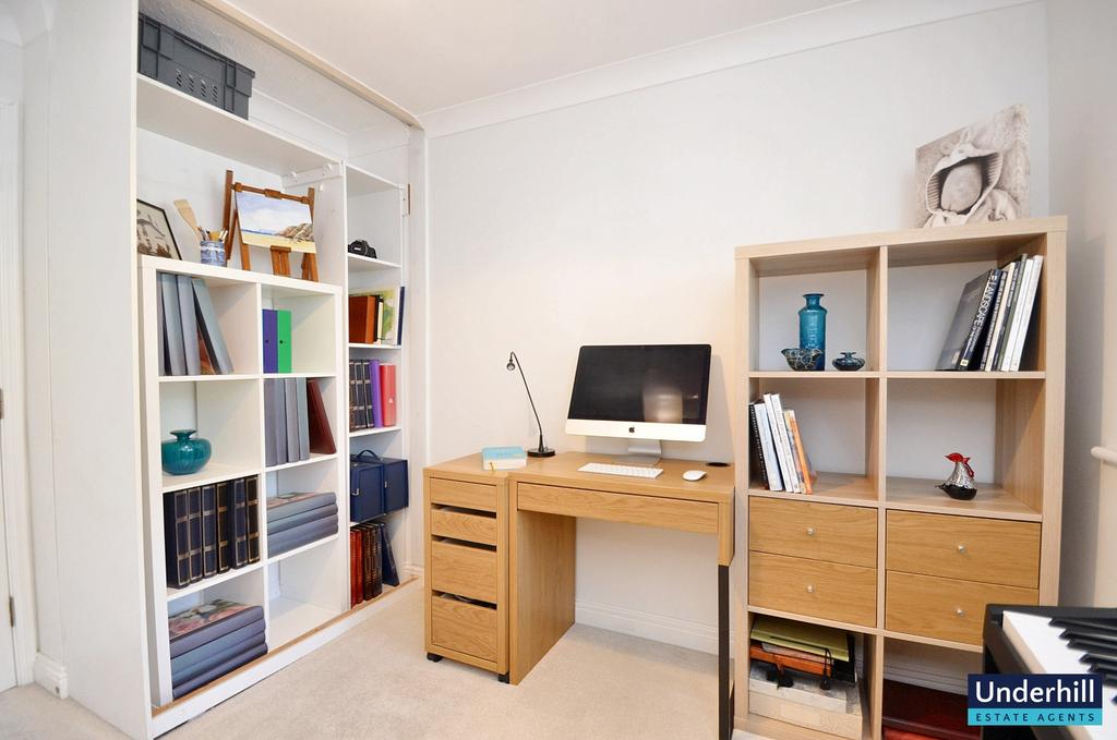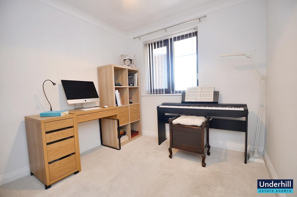 The second bedroom offers versatility; it could be ideal as a guest room, home office, or hobby space, depending on your needs. A fitted wardrobe has been used to create additional display storage.